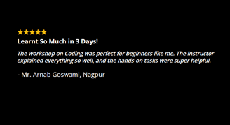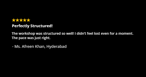 Our workshops are typically three days long, with each session lasting approximately between 1 to 1.5 hours. The exact timings of the sessions will be communicated upon registration.